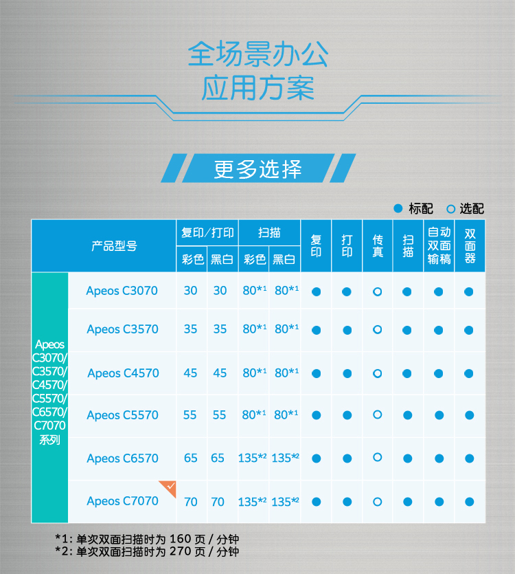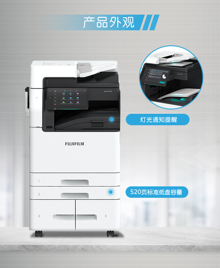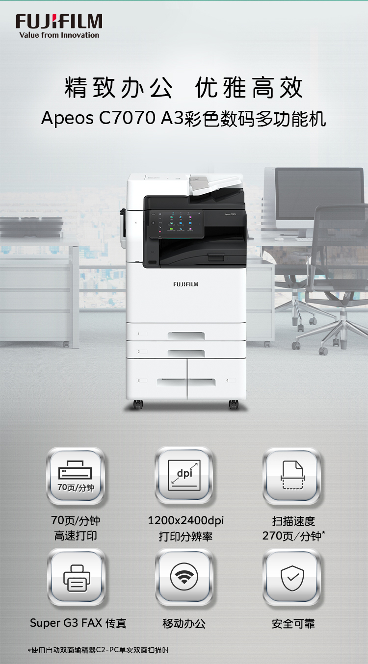 全新时代,全新Apeos,70页/分钟,A3/A4彩色双面打印/复印/扫描。