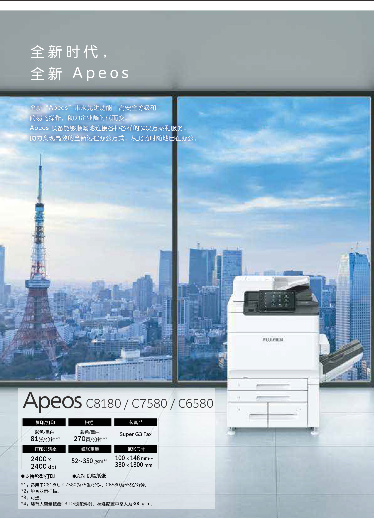 全新时代,全新Apeos,65页/分钟,富士胶片高速高效A3彩机租赁服务