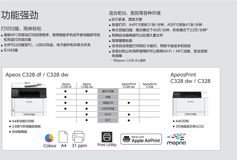 外形小巧紧凑,不仅具有出色的彩色和黑白打印质量,而且高度安全可靠。